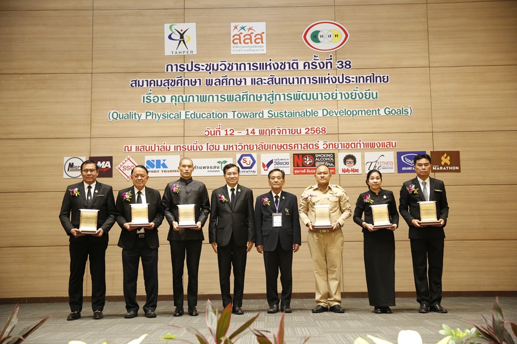 วันพุธที่ 12 พฤศจิกายน 2568 เวลา 10.00 น. ผู้ช่วยศาสตราจารย์ ดร.วีรศักดิ์ วิศาลาภรณ์ อธิการบดีมหาวิทยาลัยการกีฬาแห่งชาติ พร้อมด้วยคณะผู้บริหาร ข้าราชการ และบุคลากรจากทั้งวิทยาเขตและโรงเรียนกีฬาเข้าร่วมประชุมวิชาการแห่งชาติ ครั้งที่ 38 จากสมาคมสุขศึกษา พลศึกษา และสันทนาการแห่งประเทศไทย ภายใต้หัวข้อ "คุณภาพการพลศึกษาสู่การพัฒนาอย่างยั่งยืน" (Quality Physical Education Toward Sustainable Development Goals) โดยมี นายปรีชา ดิลกพรเมธี รองผู้ว่าราชการจังหวัดนครปฐม เป็นประธานในพิธีเปิดการประชุมฯ และ รองศาสตราจารย์ ดร.วิชิต คนึงสุขเกษม นายกสมาคมสุขศึกษา พลศึกษา และสันทนาการแห่งประเทศไทย กล่าวรายงานวัตถุประสงค์การประชุมครั้งนี้