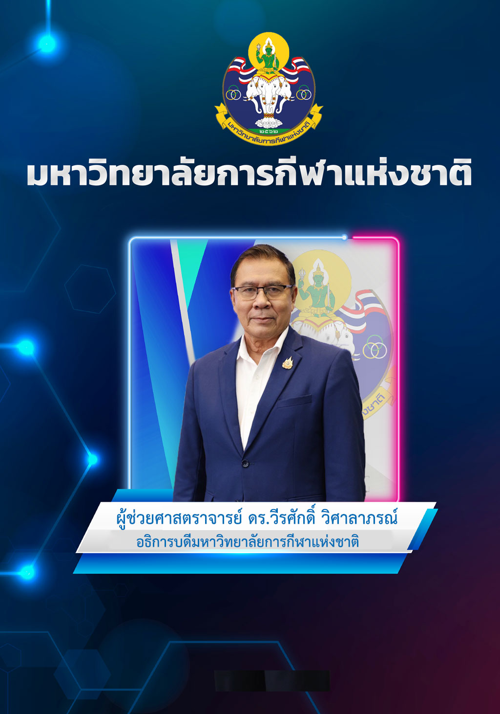 | 3 | ผศ.ดร.นิกร สีแล | รองอธิการบดีมหาวิทยาลัยการกีฬาแห่งชาติ ฝ่ายแผนและพัฒนา |